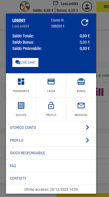 In alternativa potrai selezionare la voce Cassa sul menù dell'account: