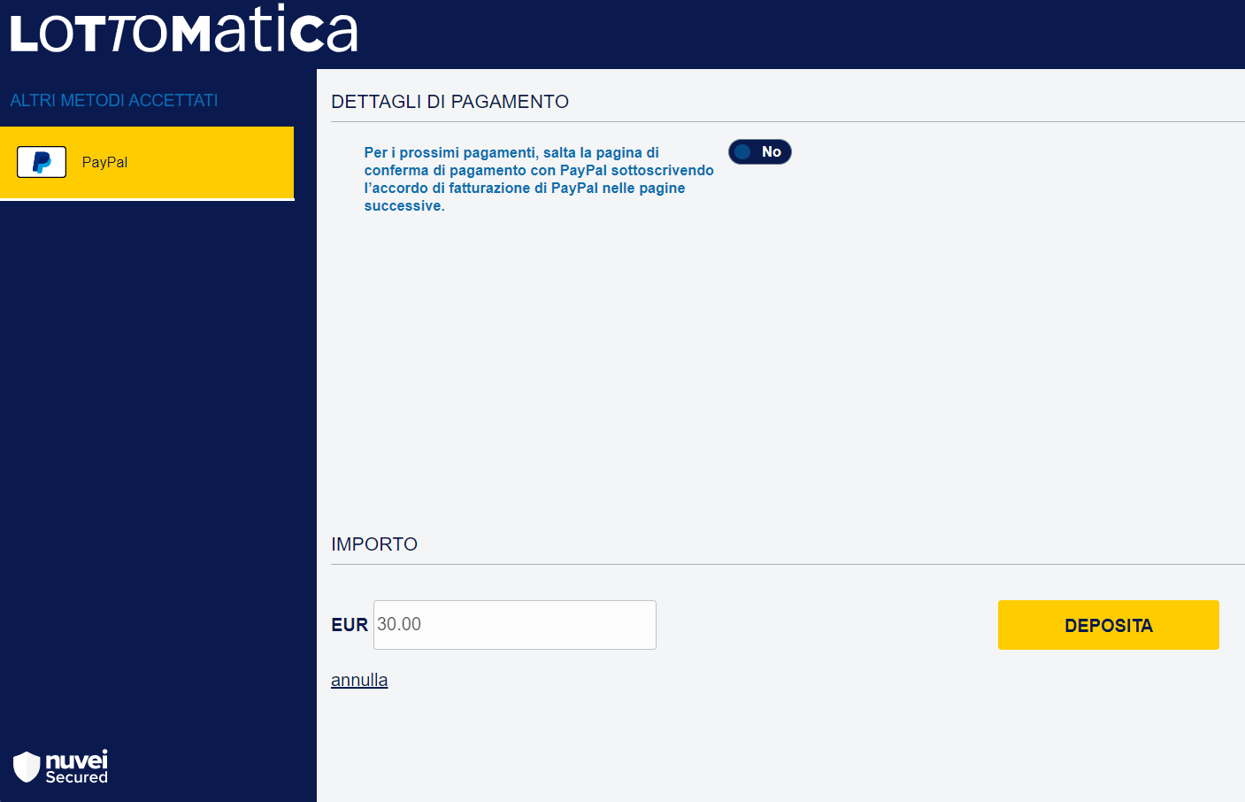 - che l'account PayPal non sia già associato ad un altro conto Lottomatica;