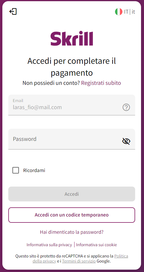 Requisito: avere un account Skrill