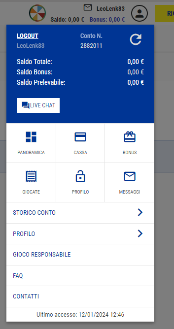 In alternativa si può selezionare la voce Cassa sul Menù a tendina dell'account: