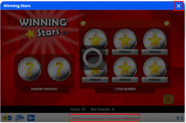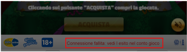 - Compare l’errore “Connessione Fallita. Vedi l’esito nel conto gioco”