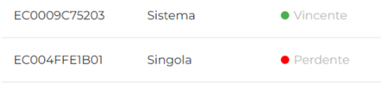 - Stato Vincente o Perdente l’avvenimento si è concluso correttamente e non necessita segnalazioni