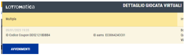 Sulla lista movimenti l’ID coupon risulterà visibile nello storico giocate