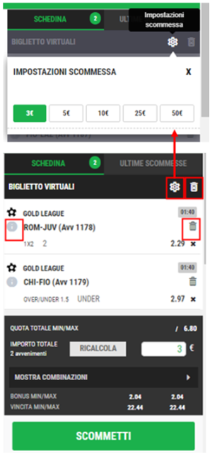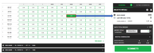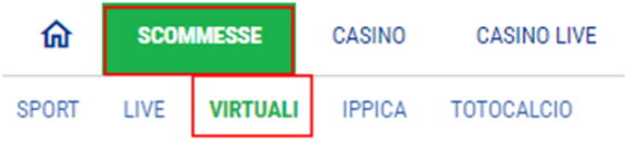 Per effettuare una giocata Virtual è necessario, dopo essersi recati nella sezione Scommesse➡Virtuali
