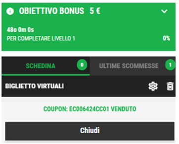 Dopo aver controllato il biglietto sarà possibile cliccare su scommetti e sarà registrato il coupon con il suo ID univoco: