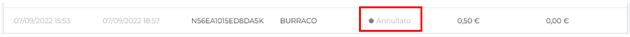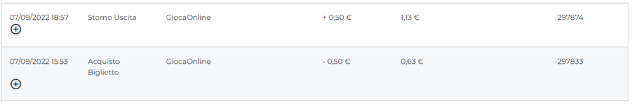Nell’area privata alla voce LISTA GIOCATE (sezione “Carte”) sarà possibile verificare lo stato della giocata come “annullato”: