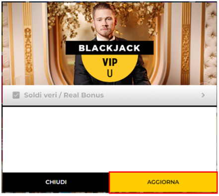 In casi del genere può essere sufficiente chiudere la finestra➡rimarrà aperto il precedente pop up di accesso al gioco con la distinzione di dover cliccare sul tasto “AGGIORNA”