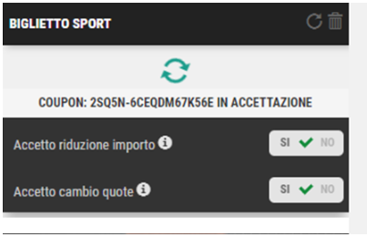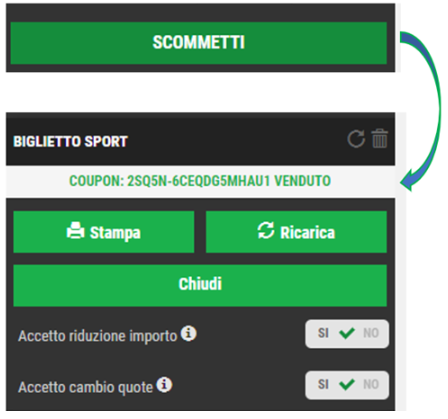 - Dopo aver premuto su scommetti il biglietto resta in attesa di accettazione per qualche secondo