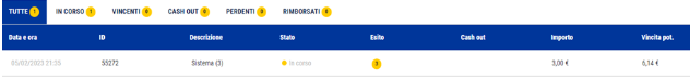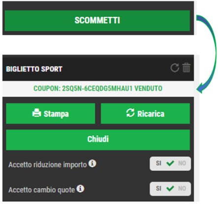 - Dopo aver effettuato la selezione in base alle preferenze sarà possibile cliccare su “Scommetti” ed attendere qualche secondo per l’accettazione