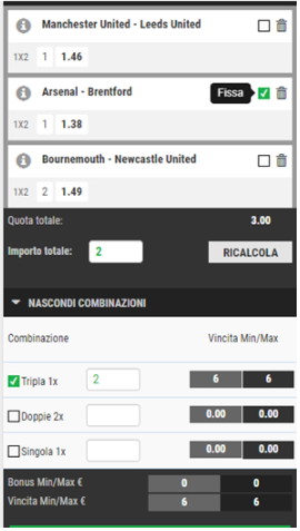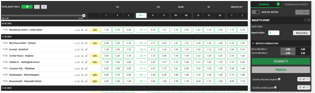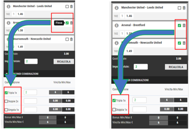 - Selezionare gli esiti desiderati che andranno a comporre un biglietto di scommesse a quota fissa convenzionale