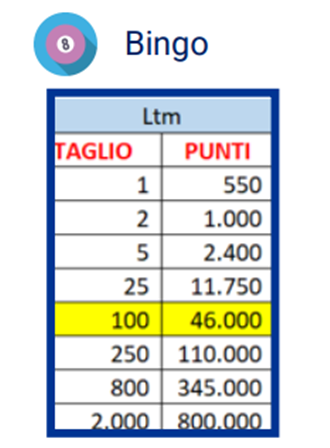 - PUNTI ➡ l'importo di punti premium necessari per convertire i differenti TAGLI