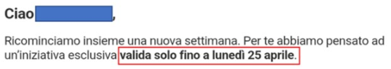 La maggior parte delle promozioni hanno un “periodo di validità”, stessa situazione per le promozioni con codice; pertanto, qualsiasi azione al di fuori del periodo specificato non porterebbe ad alcun risultato di accredito. Solitamente il periodo di inizio coincide con la data di ricezione del messaggio promozionale, al cui interno viene specificata la scadenza