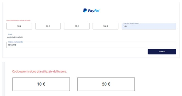 Tale messaggio comparirà anche nel caso in cui lo stesso codice promozionale sia già stato utilizzato dallo stesso utente.