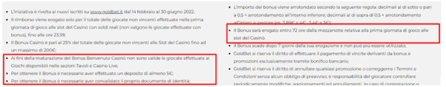 Per quanto concerne il bonus benvenuto è necessario considerare i seguenti punti: