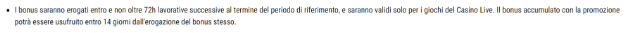 - I tempi di accredito per le promozioni ad hoc sono generalmente di 72 ore ciò nonostante l’unico riferimento sono sempre i termini e condizioni delle promozioni stesse